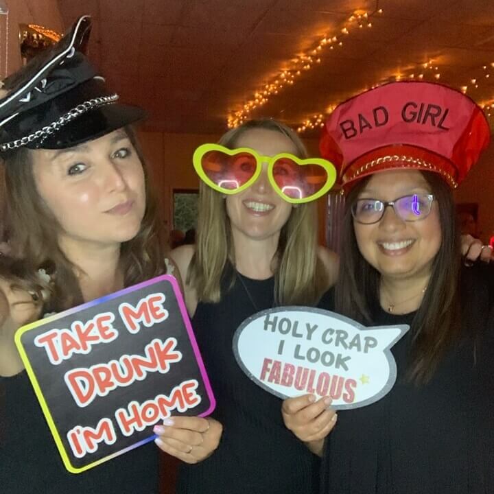 Guests receive their pictures in the blink of an eye – scan the QR code after the photo has been taken on their smart phone and BOOM! It’s on theirs in a matter of seconds ready to be saved and shared. Every picture taken during the event is sent to the customer within 7 days (Usually much sooner) ready to laugh out loud at some of the quirky expressions and added hats, wigs and props!
